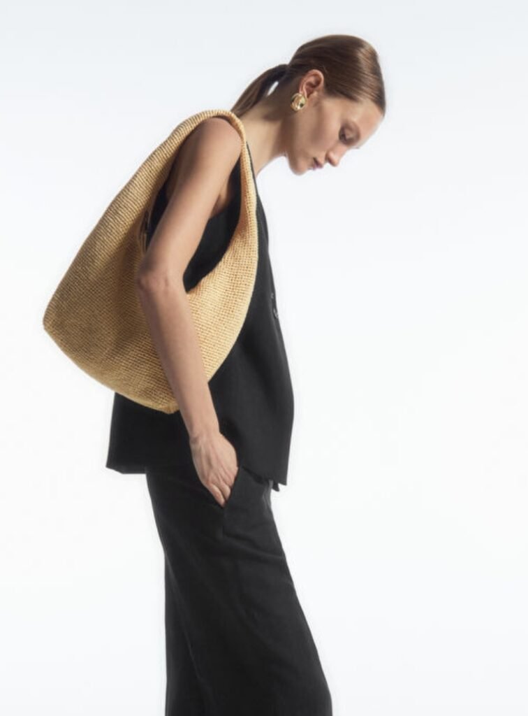 The structured bucket bag: This is your go-to for errands, coffee dates, or even a night out. The structured silhouette adds a touch of polish, while the raffia keeps it light and summery.