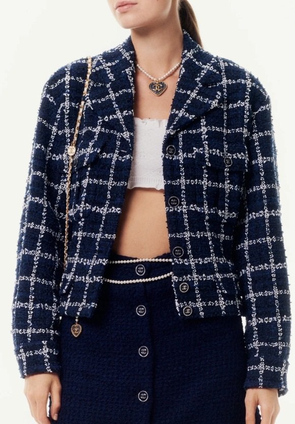 The Chanel jacket has a boxy, cropped fit. Don’t be afraid to experiment with looser cuts or slightly longer lengths to find what flatters your figure most.