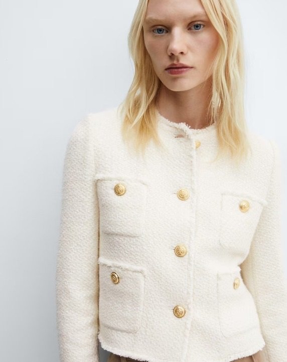 Gold buttons are another hallmark of the Chanel aesthetic. Look for blazers with chunky gold buttons, or even personalise a plain jacket with some DIY button magic!