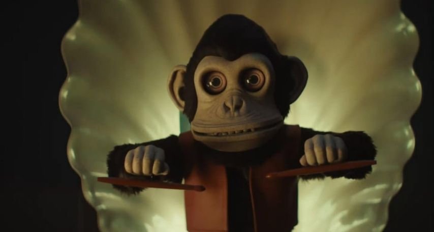 Twin brothers, played by Theo James, discover a cursed toy monkey that seems to orchestrate grisly deaths.