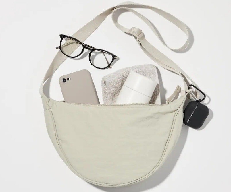 Uniqlo Round Mini Shoulder Bag: Offers a clean, minimal aesthetic with a slightly curved silhouette, earning the “banana bag” nickname.