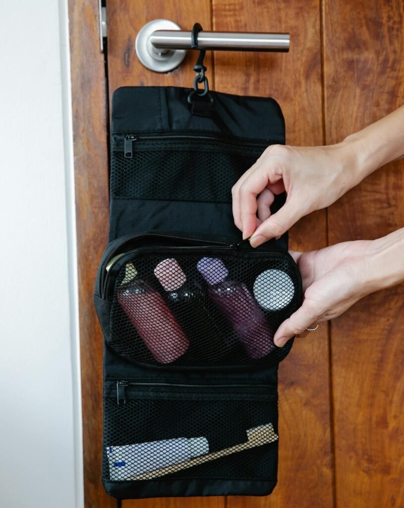 Pack travel-sized containers: Transfer your favourite products into small, travel-friendly bottles to save space and comply with airline regulations.